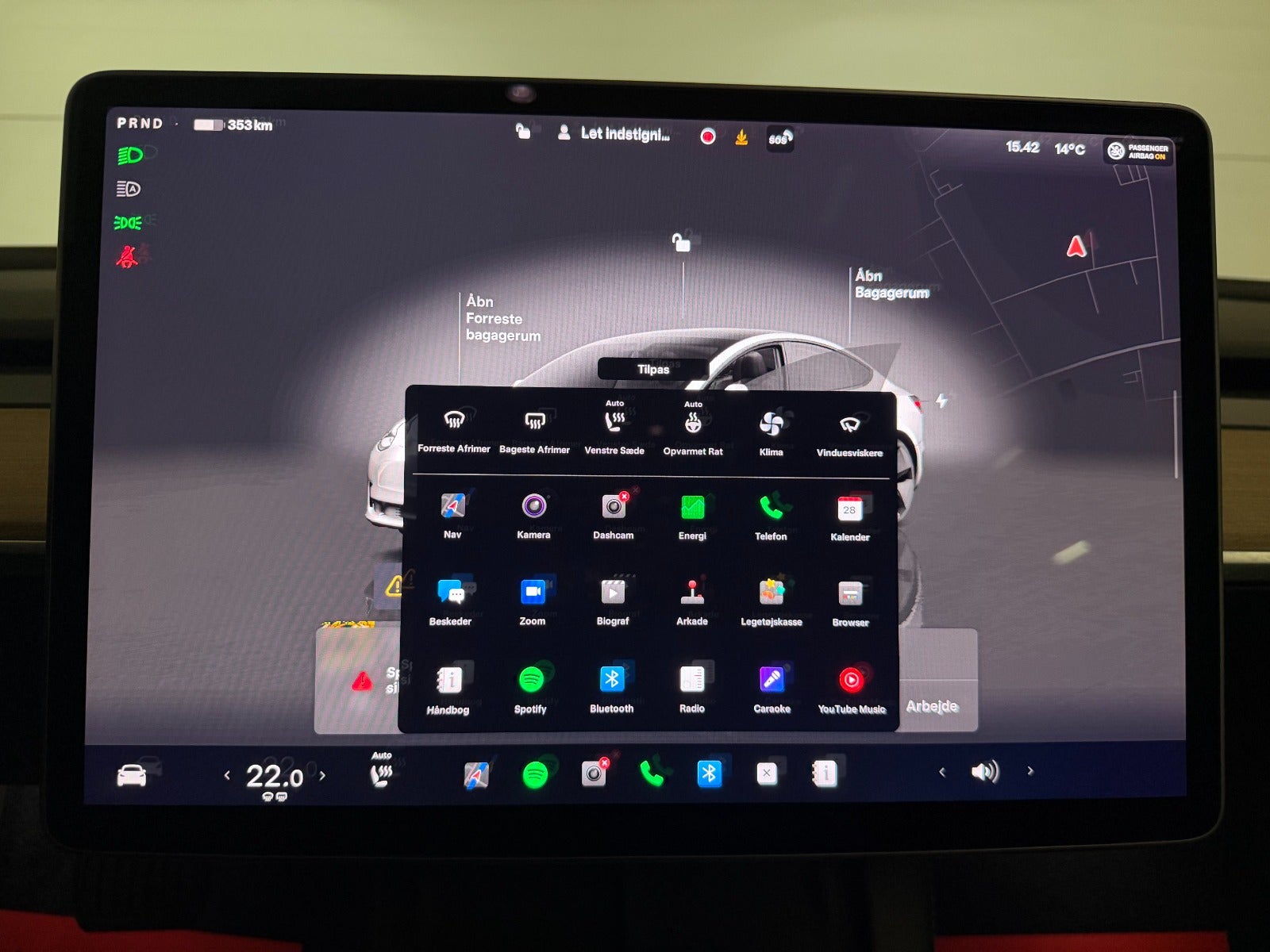 kørecomputer, bagagerumsdækken, multifunktionsrat, læderrat, læderindtræk, højdejust. førersæde, højdejust. forsæder, el indst. forsæder, el indst. førersæde, el komfortsæder, splitbagsæde, alufælge, 18" alufælge, glastag, el-sidespejle, el-sidespejle m/varme, el-klapbare sidespejle, el-klapbare sidespejle m/varme, tågelygter, led kørelys, fuld led forlygter, automatgear, varme i rat, aircondition, fuldaut. klima, 2 zone klima, elektrisk kabinevarmer, varmepumpe, centrallås, fjernb. centrallås, nøglefri adgang, nøglefri tænding, fartpilot, adaptiv fartpilot, adaptiv fartpilot med kø-assistent, udv. temp. måler, sædevarme, el-ruder, 4x el-ruder, el betjent bagklap, frunk, elektrisk parkeringsbremse, trådløs mobilopladning, cd/radio, dab radio, navigation, håndfrit til mobil, musikstreaming via bluetooth, alarm, regnsensor, 360° kamera, bakkamera, parkeringssensor (bag), parkeringssensor (for), træthedsregistrering, skiltegenkendelse, isofix, automatisk lys, fjernlysassistent, airbag, antispin, esp, vognbaneassistent, blindvinkelsassistent, automatisk nødbremsesystem, stemmebetjening